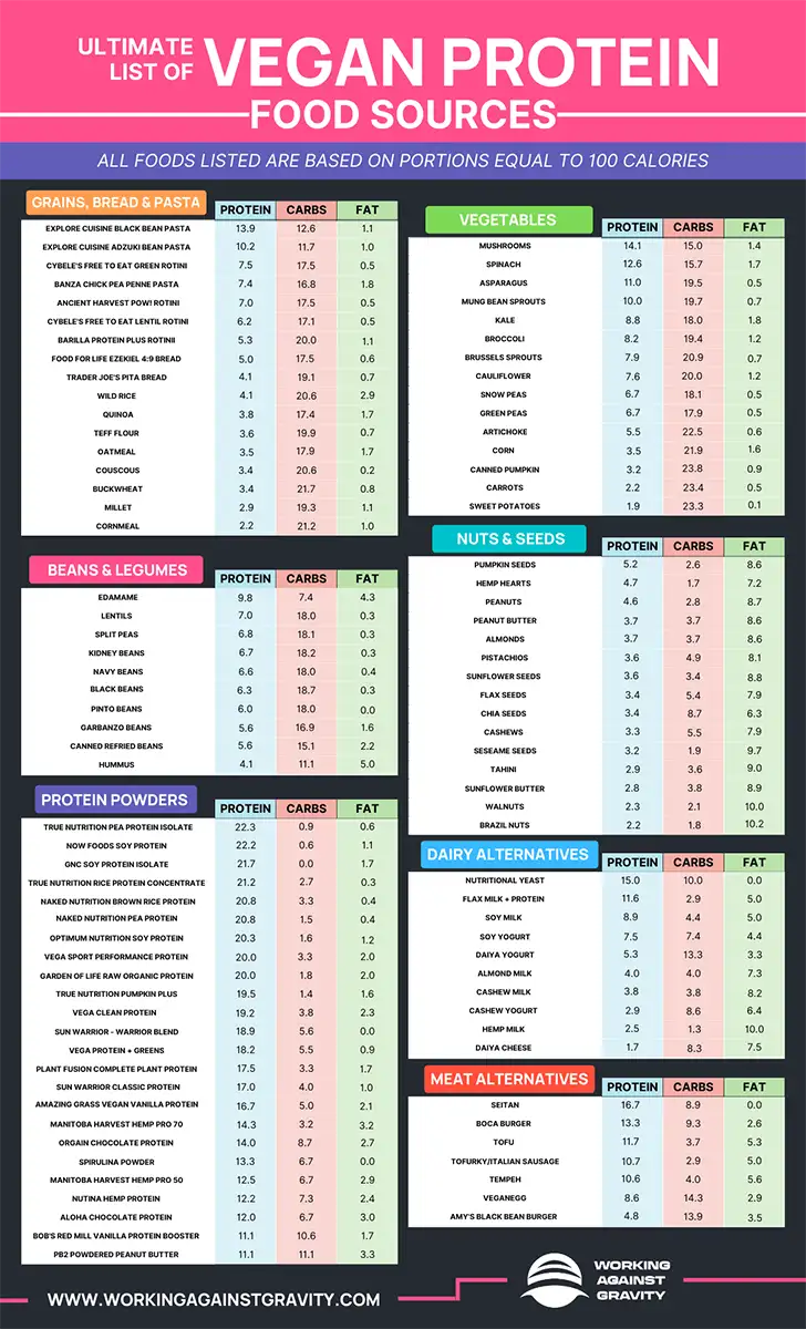 Animal products, like meat and dairy, are generally considered primary protein sources. And these foods generally have higher amounts of protein by weight. But there are plenty of plant-based sources of protein. As a vegan or vegetarian, it may take more effort and planning to ensure you get all you need throughout the day.